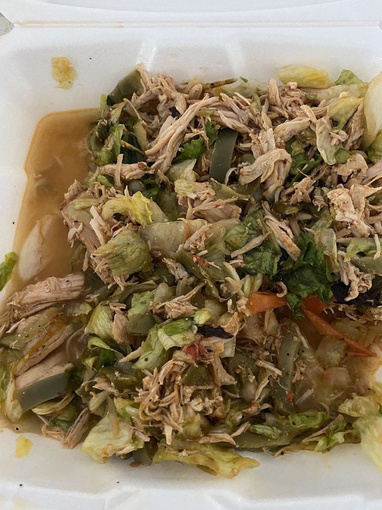 Chicken fajitas style with lettuce, tomatoes onion, cilantro charro beans, yellow cheese and avocado.